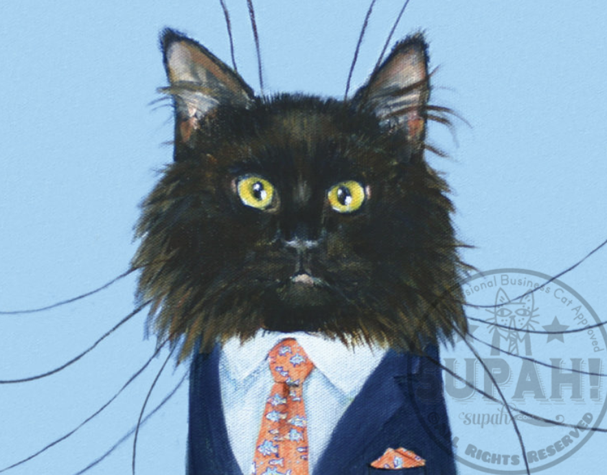 Winston, a Highly Professional Business Cat 2013, amy beth geerling payne – all rights reserved 6×8″ original acrylic on canvas; 10×8″ digital black fuzzy cat, vinyard vines, preppy cat, business cat