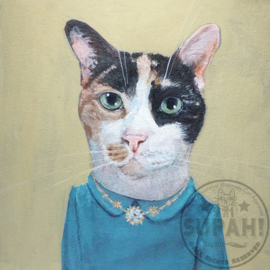 Ziggy a Highly Professional Business Cat 2016 10×10″ acrylic on canvas Amy Beth Geerling Payne © all rights reserved calico female